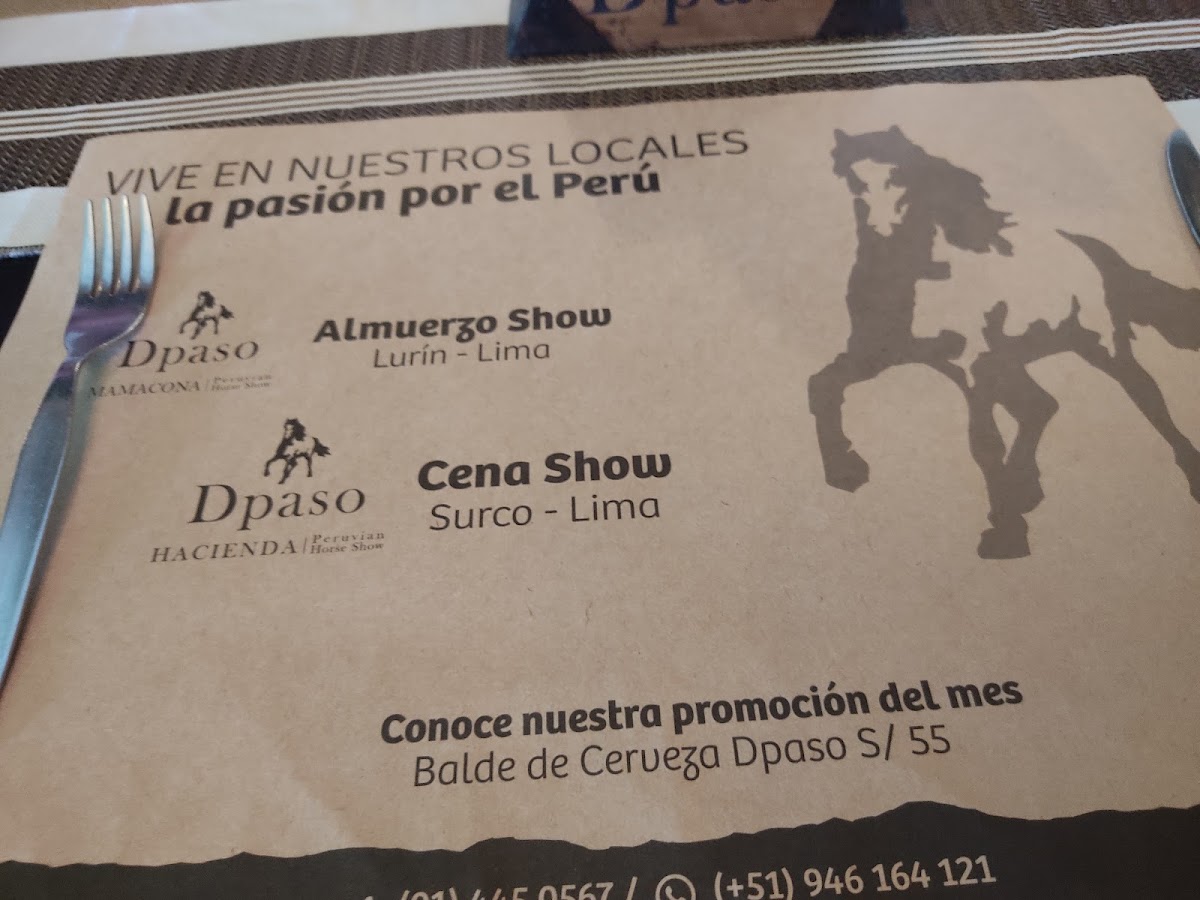 “ The buffet was okay. They didn't have many options. Their drinks are not included and start at 10soles. We paid about 150 soles per person for the buffet and show. It's a small place. I enjoyed the dances and the horse show. The experience was great. ”